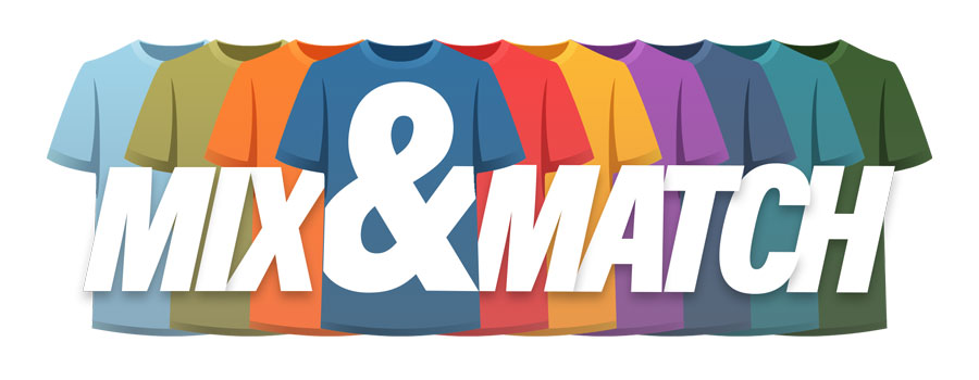 Select any number of styles with any mix of sizes and quantities from the mix and match range.